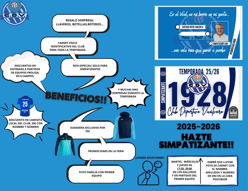 ¿Quieres apoyar a tu equipo y disfrutar de ventajas exclusivas durante toda la temporada? Con el Carnet Simpatizante por solo 25€, te unes a una comunidad apasionada y accedes a beneficios únicos que te acercan más al corazón del club.